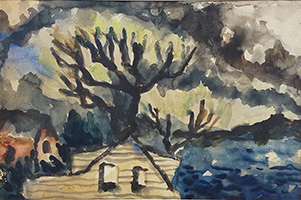 #519, Untitled, Figure by a Path, c. 1938, 19 x 30 in. (48.26 x 76.2 cm), Watercolor on illustration board